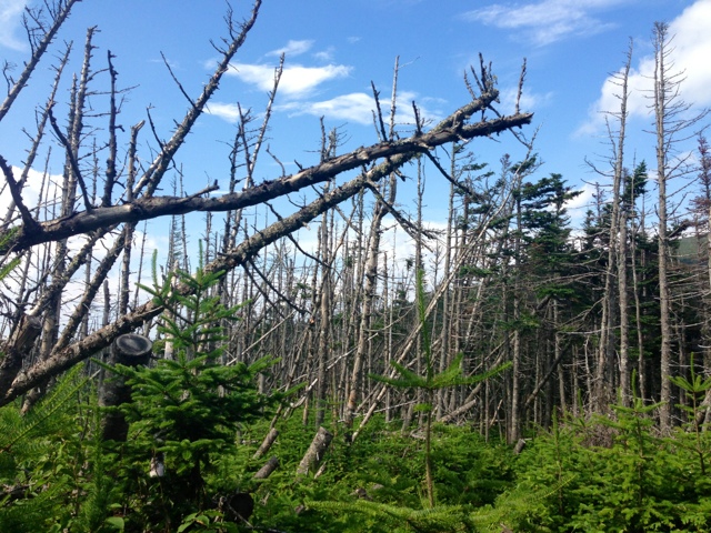Heading out from a day off in town will probably never be easy. I don't think I have enough appreciation for the slowly depreciating weight of my pack as the days pass and food is eaten. It can certainly be felt when I fill up for another 6 days on the trail. There were four noticeable climbs today, one starting straight out of town. I always feel a little like the Tin Man from the Wizard of Oz when I start up again - my joints all feel a little rusty and I need some oil (or hiking) to get them moving again. It wasvery overcast this morning since we had an early 6:00 start. The top of North Crocker Mountain was covered in fog. It was a little eerie, but very neat to walk through. The summit wasn't really open, just a small opening among the trees, but it was too cloudy to have a view of anything anyway. There was a terribly difficult descent and ascent between the Crocker Mountain summits today - straight rock and very steep. I fell about 7 times on the way down. I thought I had moved past all that, but I just couldn't seem to avoid the slippery roots and rocks today. We were supposed to have a river ford of the Carrabassett River, but the water level was low enough so it could be rock hopped across. This was a little surprising to me considering the rain the last two nights, but I was still thankful for it. We stopped at the river for lunch. It was a pleasant spot for a break and a nice foot soak. MDot and I hiked together for most of the day. He's kind of become my trail dad. We usually joke about it along the way. It cleared up some as the day went on, and there were some remarkable views as I climbed Sugarloaf Mountain. We reached 200 miles today as well. It's amazing to think I've already made it this far. It looks like the rest of Maine might need some slowing down - there are so many tough climbs and long days of hiking ahead.
